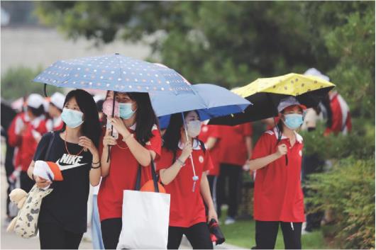 为研学游团队服务的工作人员使用手机进行网络直播,让家长能够实时看到孩子们研学游的情况。