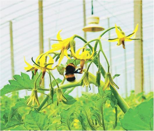 图:利津县智联农创现代示范园区温室番茄大棚内采用熊蜂授粉。(□记者 石如宽 报道)