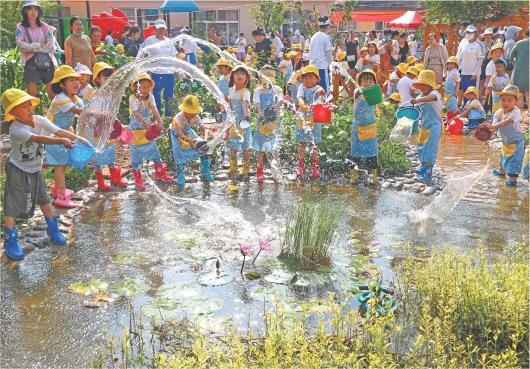 暑假期间,高密市举行主题为“看见学生 由教走向学”的教育高质量发展论坛,通过国内知名教育专家学者讲座、现场课程展示交流、线上研修等形式,为教师充电,使他们更新教育理念。图为7月25日,在高密市密水街道中心幼儿园现场课程展示会上,孩子们正在玩自主游戏。