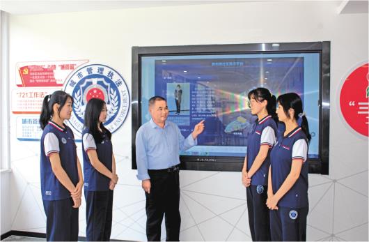近年来,潍坊市潍城区大力实施“人才领航”工程,高度重视人才全面发展工作,搭建人才拓展技能平台,组织辖区职业院校学生进企业、进机关、进社区开展社会实践。图为近日在潍城区西关街道胜利西社区,社区党委书记张居营(中)向学生讲解社会实践要领。