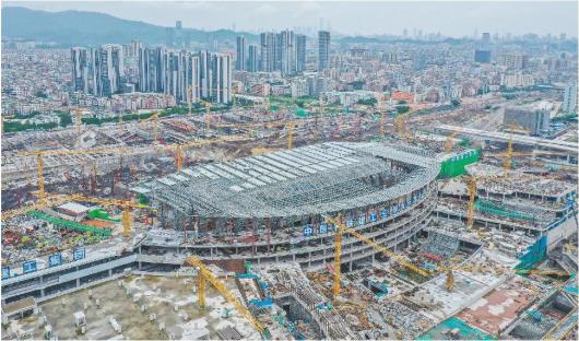 这是8月4日拍摄的建设中的广州白云火车站(无人机照片)。