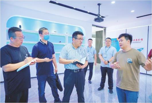 本报记者(左一、左二、左三)在临清经济开发区电子信息高端装备产业园采访。