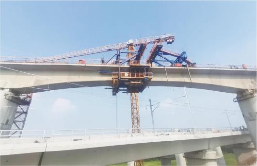 济莱济滨上行联络线特大桥连续梁中跨顺利合龙