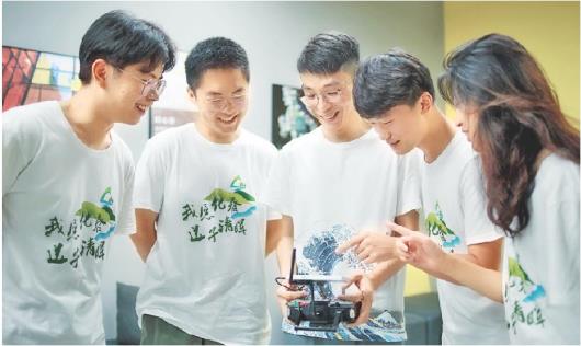 日前,淄博市张店区开展“城市体验日”活动,通过组织高校学子参观优秀企业、园区、创业中心、青年网红打卡地等,体验城市多彩活力氛围和服务人才发展的创新创业环境,提升“青和力”。图为山东大学学生在归心谷大红炉双创中心与青年创业者交流遥感机器人相关专业技术。