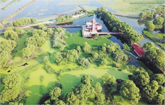 位于南四湖的微山湖国家湿地公园和水质监测站。