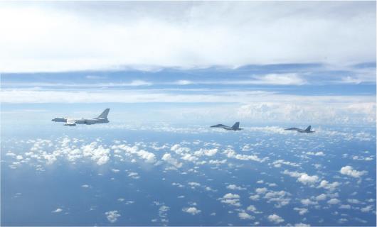8月7日,中国人民解放军东部战区按计划在台岛周边海空域进行实战化联合演训。这是战机编队飞行。