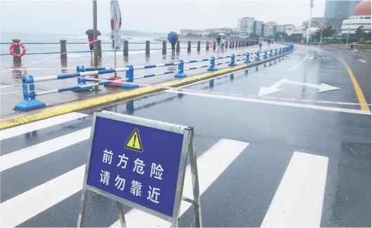 9月15日,为防范台风“梅花”,青岛市区沿海道路设置安全隔离区。(□记者 卢鹏 通讯员 张超 报道)