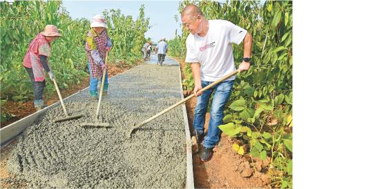 近日,枣庄市山亭区水泉镇赵岭村“第一书记”张少春(右一)在参加修路。张少春在深入调研、广泛了解民情民意的基础上,筹集100万元帮扶资金,为村里修建3.6公里生产路,方便了村民的生产生活。