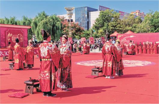 9月28日,“喜在单州 缘定湖西”单县首届“善喜缘”新时代文明实践集体婚礼在单县财富广场举行。20对身着汉服的新人,在进行了开礼、传家训、诵诺言、请婚书等环节后完成婚礼仪式。此次举办集体婚礼,旨在持续推进移风易俗,弘扬时代新风,引导广大群众破除陈规陋习。