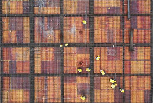 工人们在钢管构成的“丛林”中闪转腾挪,如同五线谱中跳动的音符。
