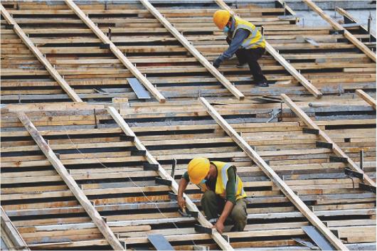 工人用精准力度敲击钉子,加固模板。