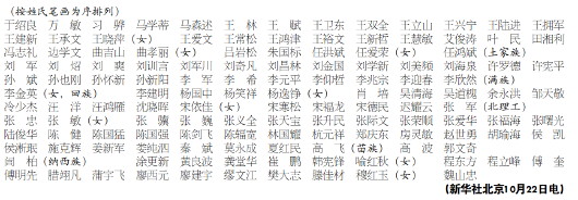 中国共产党第二十届中央委员会委员名单