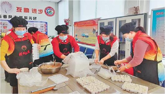 日前,在荣成市燕语春风社会工作服务中心的爱心厨房,志愿者制作爱心食品,送给当地的失能家庭和残疾家庭。近期,荣成市统一战线团体社会组织联合会开展了“助餐”志愿服务,让特殊家庭感受关爱和温暖。