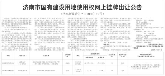 济南市国有建设用地使用权网上挂牌出让公告