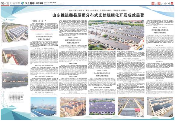 山东推进整县屋顶分布式光伏规模化开发成效显著