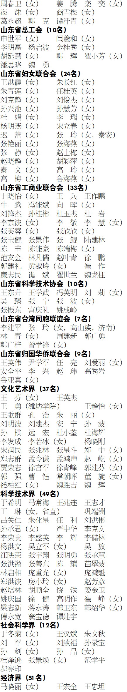 (2022年12月28日政协山东省第十二届委员会常务委员会第二十五次会议和会议授权的2023年1月9日政协山东省第十二届委员会第五十二次主席会议通过)(共866名,分界别按姓氏笔画排序)