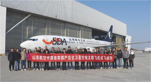 本报济南讯 1月2日上午10时许,随着山东航空注册编号为B-220W的波音737-800客机在济南遥墙国际机场缓缓降落,标志着安装有我国首套完全国产自主Ku频段高通量机载宽带卫星通信终端的高速空地互联飞机试飞成功。