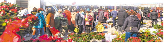 边走边逛,眼见热热闹闹中有买有卖,冰凉的空气里溢满了食品诱人的香气,大红的春联,彩色的气球,花鸟虫鱼,年糕、黄面窝窝、炒栗子,红枣、柿饼、山鸡蛋、圣女果、豆腐、小米茶汤、春联、农家土鸡、自产小米……还有各种叫不上名字的稀罕山货,让人眼花缭乱。此起彼伏的叫卖声与人们的欢笑声、爆米花出锅的砰砰声汇聚在一起,那么可人、动听。