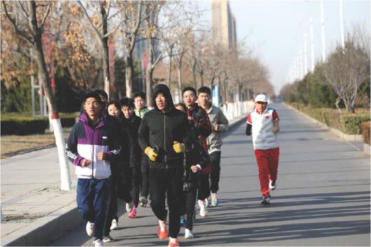 阳信县城街道的辅路上,马明涛带领队员们拉练长跑,这是他们每天的必修课。