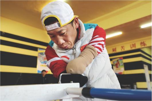 马明涛是滨州市阳信县河流镇人,2000年正月里,11岁的马明涛因触电事故导致双臂截肢。飞来横祸没有击垮马明涛,他用断肢练习写字、骑车、洗衣,回归正常学习生活。上初中时,自强的马明涛展露出运动天赋,他先后到滨州市体校和山东省体工队接受专业训练,获得过8枚省残运会金牌和多个全国性残疾人田径比赛冠军,打破两项全国长跑比赛纪录。2015年,马明涛被推荐进入越野滑雪国家队,参加了2018年平昌和2022年北京两届冬残奥会。