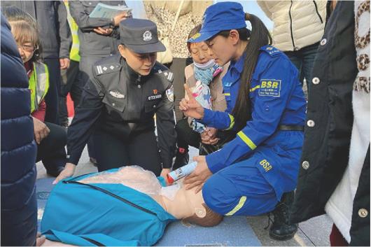 女警们邀请志愿者在社区开办急救课堂,普及急救常识。