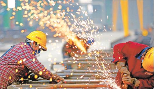 2月12日,在滕州市三维重工有限公司,工人正在进行钢构件打磨作业。新春伊始,全省各地企业陆续在节后复工复产,工人加快生产进度赶订单,为首季“开门红”打基础。