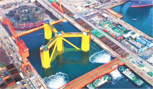 2月23日,我国首座深远海浮式风电平台“海油观澜号”完成主体工程建设,从青岛西海岸新区启运。
