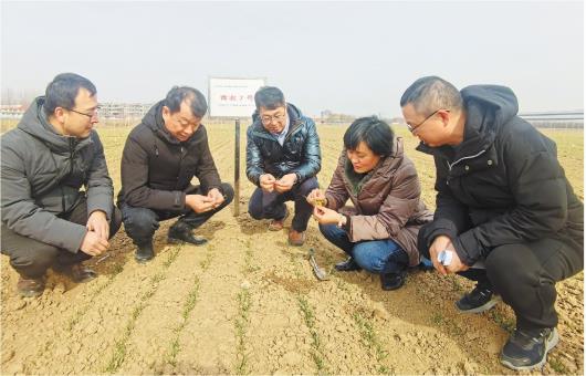 2月23日,省级农业专家来到侯元江的示范田查看小麦长势。