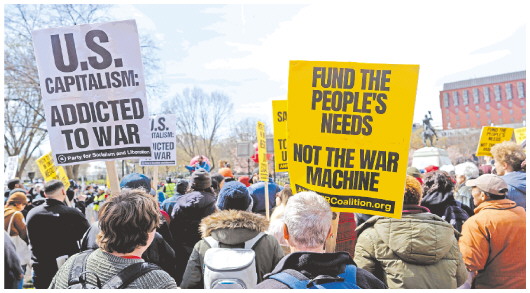 3月18日,美国首都华盛顿,反战人士在白宫前集会,敦促美政府反思伊拉克战争,关停“战争机器”。 ┬新华社发