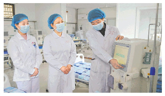 2020年12月,淄博市中心医院肾病科名医基层工作站落户杨寨卫生院,每周3天都会有名医坐诊,患者在家门口就能享受到市级专家的服务。但由于没有透析设备,肾病患者还需要到区级或市级医院透析,非常不方便。为此,从2021年下半年开始,杨寨卫生院抽调9名医护人员成立了血液透析科,轮流到淄博市中心医院进行为期9个月的培训,同时按标准设置病房,并购置10台血液净化机。