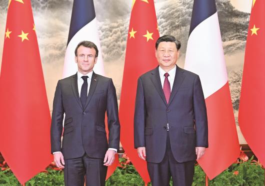习近平欢迎马克龙再次访华。习近平指出,当今世界正在经历深刻的历史之变,中法作为联合国安理会常任理事国和具有独立自主传统的大国,作为世界多极化、国际关系民主化的坚定推动者,有能力、有责任超越分歧和束缚,坚持稳定、互惠、开拓、向上的中法全面战略伙伴关系大方向,践行真正的多边主义,维护世界和平、稳定、繁荣。