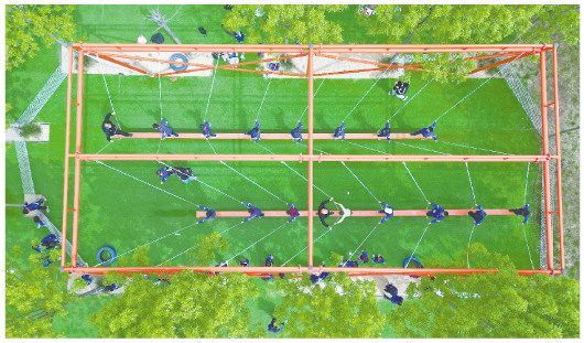 4月12日,广饶县李鹊研学小镇拓展训练基地,来自李鹊镇小张小学的学生们在平衡木上进行拓展训练。李鹊镇充分发掘当地生态资源、历史文化、乡村民俗等元素,打造集农旅体验、劳动实践、休闲娱乐为一体的研学小镇,有效带动镇域农文旅融合发展,助推乡村振兴。