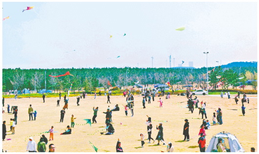 在威海经开区近日举办的东浦湾·首届风筝节系列活动中,威海市民和游客露营、踏青、赏花、郊游、放风筝,尽情享受美好春景。
