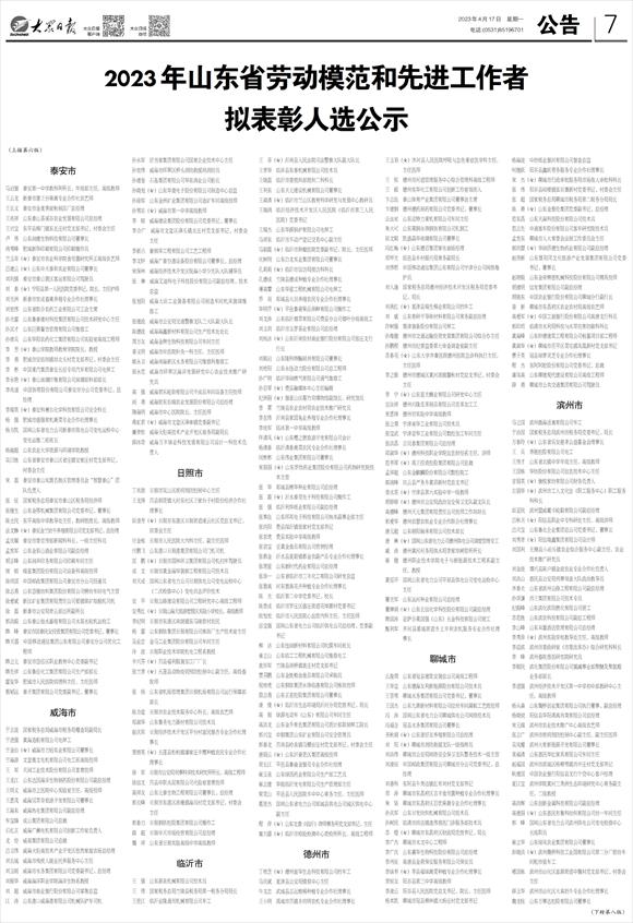 2023年山东省劳动模范和先进工作者拟表彰人选公示