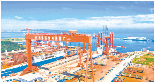 山东把海洋作为高质量发展的战略要地,大力发展现代海洋产业,把船舶和海工装备产业链作为11条标志性产业链之一进行重点突破。图为招商局金陵船舶(威海)有限公司。(□记者 郑莉 报道)