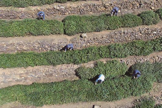 “这里群山环绕的地理环境和特殊气侯,让露天茶树能够越冬。”刘霞说。以沂水县院东头镇为代表的山东内陆高山茶区,地处沂蒙山区腹地,上世纪五六十年代南茶北引工程在此进行规模种植,存活下来的茶树成为难得的优质资源。近年来,当地推广绿茶种植加工,在蒙山龙雾公司等龙头企业带动下,院东头镇由1700亩茶园、840户茶农发展到现在5200亩有机茶园、1700户茶农,植茶村发展到28个。