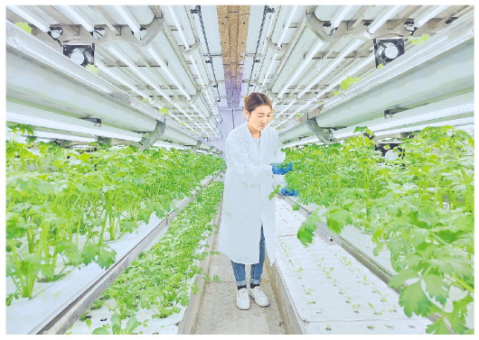 这个40尺的集装箱可种植5000株叶菜,相当于2亩地的产量。28天收割一茬,每天用电约80度,水和营养液实现了闭环循环,节水节能。“我们在集装箱内,完全模拟自然环境,对光照、二氧化碳浓度、营养液等环境条件进行高精度控制,让叶菜实现纯净的智能种植模式。”寿光翔天农业科技有限公司总经理刘朋朋说。