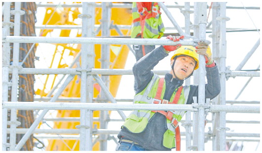 4月30日,青岛市重庆路快速路工程建设工地,施工人员作业紧张有序,现场一派忙碌火热景象。