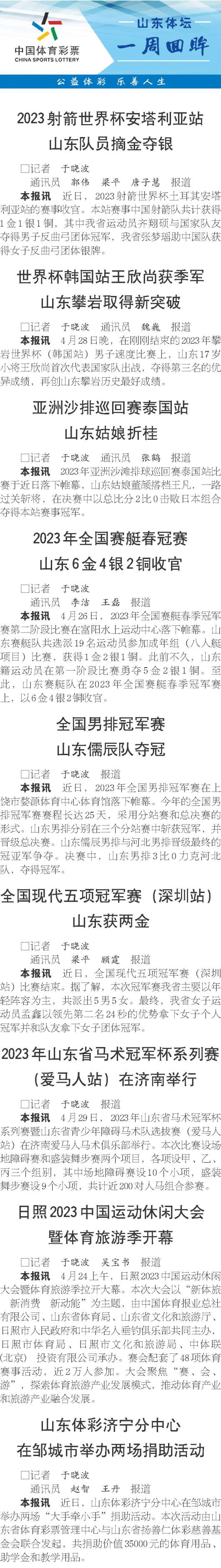 山东体坛一周回眸