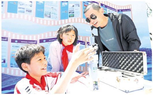 5月12日,自然资源部北海局在青岛小麦岛公园开展海洋防灾减灾宣传,讲解海洋灾害信息和海洋灾害风险知识,介绍高精度海洋观测设备的工作性能和使用方法。