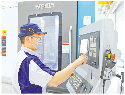 在山东威达重工股份有限公司(以下简称威达重工)车间内,转头飞速旋转,钢屑飞舞四散。“这在以前可是6台机器、6道工序的工作量呢!”如今,一个技术工就搞定整个智能生产线。威达重工总经理吕慧彬说,威达重型数控机床智能工厂运用“5G+”技术,实现智造岛集成式生产、AGV无人配送,可带动全市300余家上下游配套企业向数字化、智能化、减碳化方向转型升级。