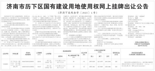 经济南市历下区人民政府批准,济南公共资源交易中心与济南市历下区自然资源局联合发布国有建设用地使用权挂牌出让公告,现将有关事项公告如下: