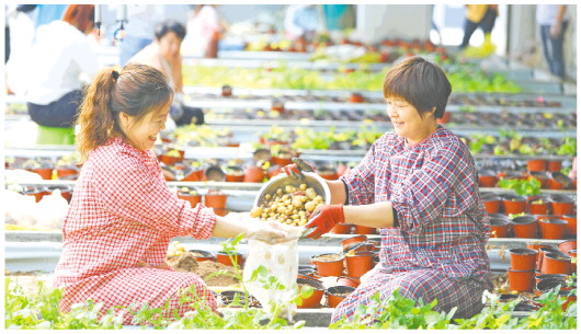 近日,乐陵市国家马铃薯工程技术研究中心繁育大棚里,工人们正在收获“航天马铃薯”。