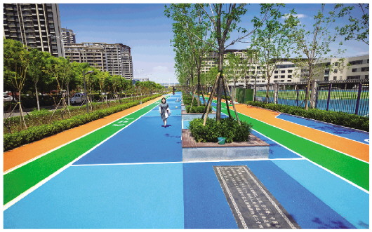 如今,行走在济南市历城区唐冶西路与益民街路口附近的人行道上,脚下的路是彩色的,红蓝绿黄,煞是好看,鲜花与路面相映相衬,形成一道亮丽的风景线。