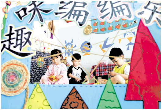 6月5日,菏泽市牡丹区小留镇中心幼儿园,孩子们在练习绳编技艺。近年来,牡丹区着力推进优秀传统文化进校园工作,利用当地绳编、面塑等丰富的非遗资源,将传统文化融入校园活动中,让学生感受非遗文化的魅力,打造特色传统文化教育品牌。