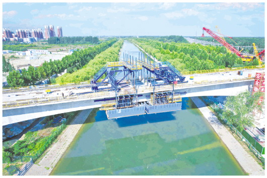 新建济郑高铁山东段跨小清河特大桥全长861.96米,同时跨越小清河南路、小清河北路及小清河、南水北调干渠和京沪铁路,是连接小清河线路所和济南西第二动车所车场的唯一通道。
