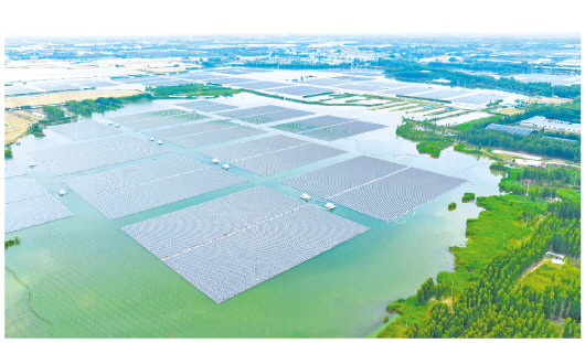 微山县驩城镇采用“农光互补”“渔光互补”等方式,在采煤塌陷地建设光伏领跑技术基地项目,增加采煤塌陷地综合利用效能。光伏领跑技术基地项目总装机容量250MW,集光伏发电、渔业养殖和生态修复于一体,年发电量2.5亿度,年节约标准煤11.85万吨。
