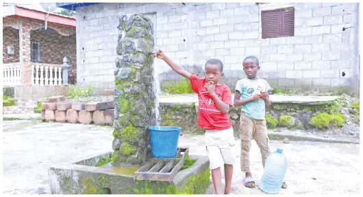 6月13日,在赤道几内亚北比奥科省村镇柏搜搜,孩子们在公共取水点取水。