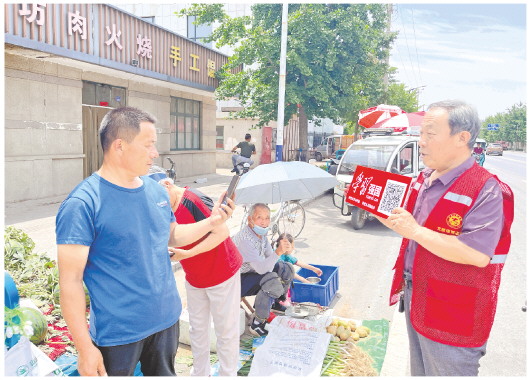图为近日在诸城市昌城镇,志愿者在昌城大集引导群众用好“学习强国”这个“移动加油站”。