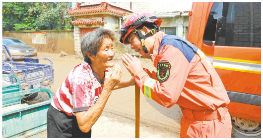 “我们是同批战友,他知道我们来河北增援,专门来看我们。”8月8日,涿州中关村和谷创新产业园内,山东消防聊城增援分队的张林林紧紧拉住老战友刘营的手。